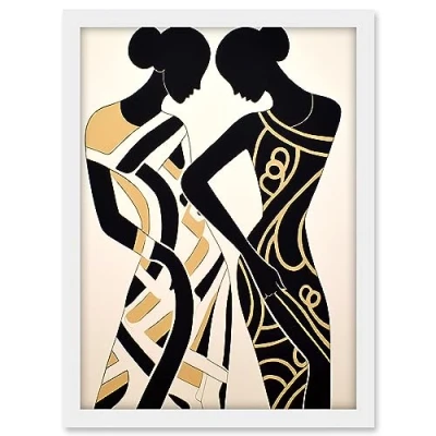 Artery8 Women Dancing Abstract Pattern Dress Beige Black Silhouettes Body Line Artwork Framed A3 Wall Art Print