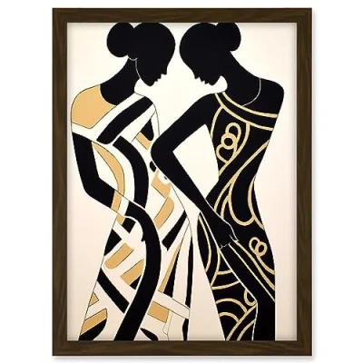 Artery8 Women Dancing Abstract Pattern Dress Beige Black Silhouettes Body Line Artwork Framed A3 Wall Art Print
