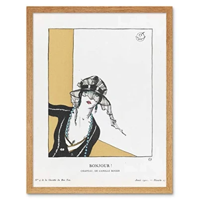 Artery8 Woodruff Camille Roger Hat Fashion 1921 Drawing Art Print Framed Poster Wall Decor 12x16 inch