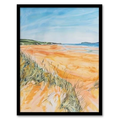 Artery8 Woolacombe Beach Seaside Landscape Watercolour Bathroom Toilet Artwork Framed Wall Art Print A4