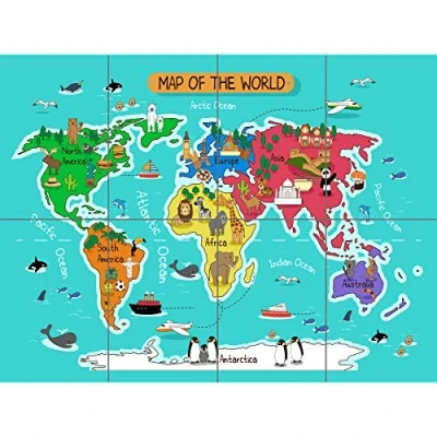 Artery8 World Map With Landmarks And Animals XL Giant Panel Poster (8 Sections)