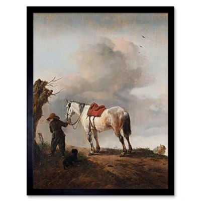Artery8 Wouwerman The Gray Horse Painting Art Print Framed Poster Wall Decor 12x16 inch