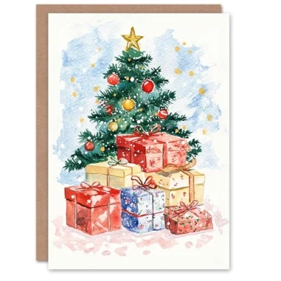 Artery8 Wrapped Presents Gifts Decorated Under Tree Blank For Him Or Her Art Xmas Festive Christmas Card