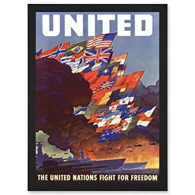 Artery8 WW2 World War Allies United Nations Fight Freedom Vintage A4 Artwork Framed Wall Art Print