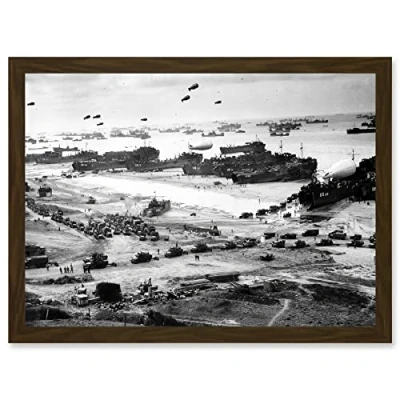 Artery8 WWII World War US Landing Ships Omaha Beach D Day 1944 Photo Artwork Framed Wall Art Print A4