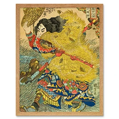 Artery8 Yang Lin Kinhyoshi Yorin 108 Heroes Water Margin Utagawa Kuniyoshi Japanese Woodblock Reproduction Art Print Framed Poster Wall Decor 12x16 inch