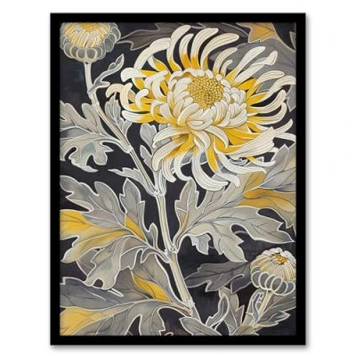 Artery8 Yellow Chrysanthemum Flower Detailed Artwork Living Room Framed Wall Art Print A4