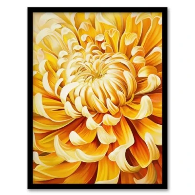 Artery8 Yellow Chrysanthemum Flower Petals Painting Living Room Artwork Framed Wall Art Print A4