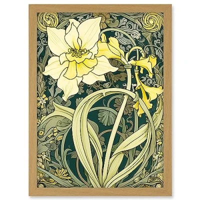 Artery8 Yellow Daffodil Flower Watercolour Art Nouveau Artwork Framed Wall Print A4
