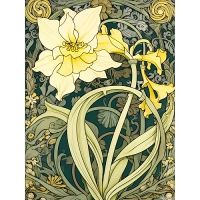 Artery8 Yellow Daffodil Flower Watercolour Art Nouveau Large Wall Poster Print Thick Paper 18X24 Inch