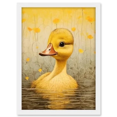 Artery8 Yellow Duckling Kids Bedroom Baby Nursery Calm Elegant Artwork Framed A3 Wall Art Print