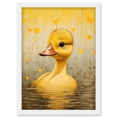 Artery8 Yellow Duckling Kids Bedroom Baby Nursery Calm Elegant Artwork Framed Wall Art Print A4