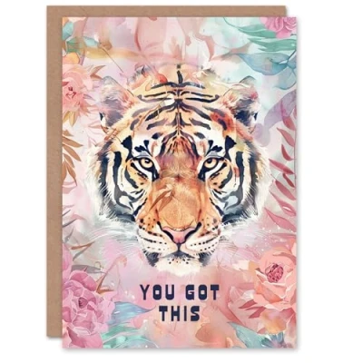 Artery8 You Got This Bohemian Tiger Floral Watercolour For Her Woman Good Luck Card