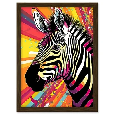 Artery8 Zebra Portrait Vibrant Colourful Stripes Bright Bold Psychedelic Rainbow Artwork Framed A3 Wall Art Print
