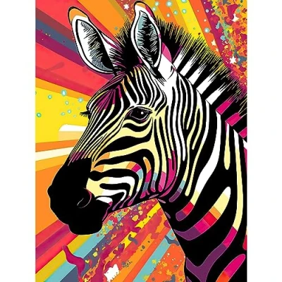 Artery8 Zebra Portrait Vibrant Colourful Stripes Bright Bold Psychedelic Rainbow Large Wall Art Poster Print Thick Paper 18X24 Inch