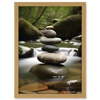 Artery8 Zen Massage Stone Photograph Waterfall River Nature Beauty Salon Therapy Room Artwork Framed A3 Wall Art Print
