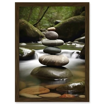 Artery8 Zen Massage Stone Photograph Waterfall River Nature Beauty Salon Therapy Room Artwork Framed Wall Art Print A4