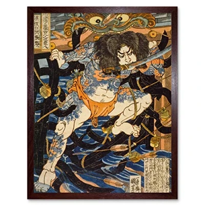Artery8 Zhang Shun White Stripe 108 Heroes Water Margin Utagawa Kuniyoshi Japanese Woodblock Reproduction Art Print Framed Poster Wall Decor 12x16 inch