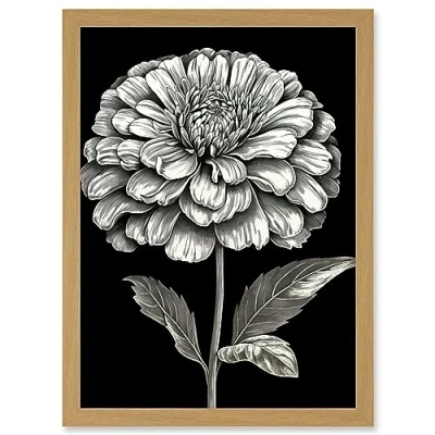 Artery8 Zinnia Flower Bloom Black and White Illustration Artwork Framed Wall Art Print A4