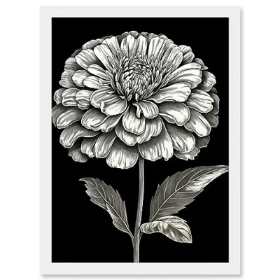 Artery8 Zinnia Flower Bloom Black and White Illustration Artwork Framed Wall Art Print A4