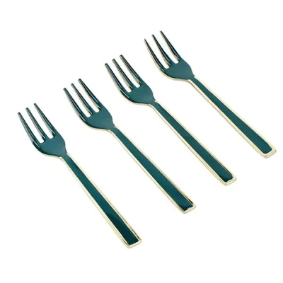 Harts of SturThe Artesa Enamel Green Set of 4 Serving Forks are perfect for serving afternoon tea with cakes and desserts and are light and comfortable to use.Made from durable stainless steel with an enamel coating and gold-plated finish.Complete with a 5 year manufacturer's guarantee. Size: 11.5(L) x 2(W) x 1.25(H)cm.