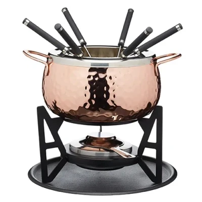 Throw your own fondue party with this fondue set. 1900ml capacity. The elegant copper effect finish will look equally at home in a classic or contemporary setting - all you have to do is choose which type of fondue to have - cheese, meat or chocolate! 5 year guarantee.