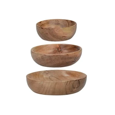 What You'll Get - Artesà Wooden Salad Serving Bowls: Nature's beauty and functionality come together in this set of 3 acacia wood bowls from Creative Tops, ideal for serving snacks and dips at your next dinner party or for use as decorative accent pieces. Striking Design - Handcrafted from acacia wood with stunning unimpeded grain patterns, these wooden appetiser plates make a bold statement on any dining table. Versatile Use - These wood food serving dishes have a depth of 3 cm (1") and come in 3 sizes, perfect for serving a variety of snacks, nibbles, dips, and tapas. Embrace Nature - Make nature's beauty the centerpiece in your home with the Naturals collection from Creative Tops, featuring a range of wooden kitchen accessories and serveware. Creative Tops Quality - These wood salad serving bowls are hand-wash only and are made with Creative Tops' quality , ensuring your satisfaction with this high-quality kitchen accessory.