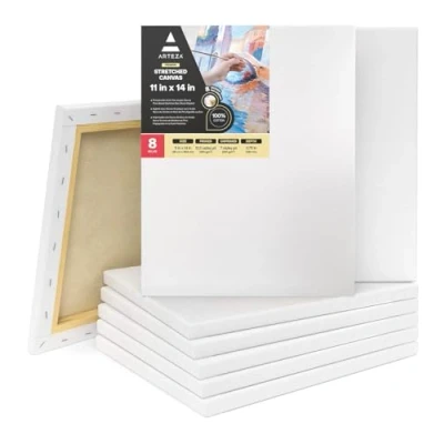 Arteza 28 x 36 cm (11"x14") Premium Stretched Canvas, Bulk Pack of 8, Primed, 100% Cotton for Painting, Acrylic Pouring, Oil Paint & Wet Art Media, Supplies Artist, Hobby Painters Beginner