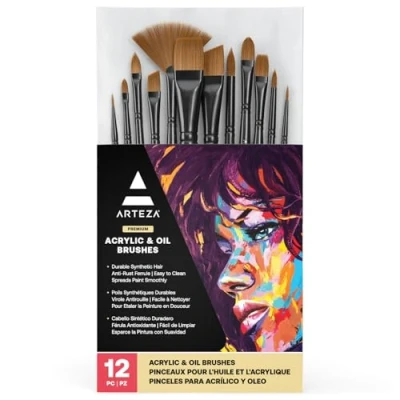 Set of 12 Premium Oil & Acrylic Paint Brushes: Our Arteza acrylic brush set is designed with durability in mind. Each brush in the set has professional quality synthetic hair, brass ferrules, and durable birch handles. High Quality Synthetic Hair Bristles Won’t Spread or Fall Out: While other brands’ synthetic acrylic brushes have bristles that spread out and fall out, we’ve created our paint brushes for acrylic paint with a strong brass ferrule which keeps our bristles intact. For More than Acrylic & Oil Painting: Whether you’re looking for durable brushes to paint your next model plane or you have a new wood or ceramic project that needs painting, our thick and thin paint brushes are just what you need for your project. Designed & Created by Artists: Here at Arteza, we are passionate about creating products that inspire. For us, art is an expression of the human experience. That’s why we make Arteza art supplies affordable with the hope of art being accessible to all people. We Care About Our Customers: We want to ensure you have a great experience with our products, because we truly care about our customers. If you have any issues, please reach out and we’ll make it right.