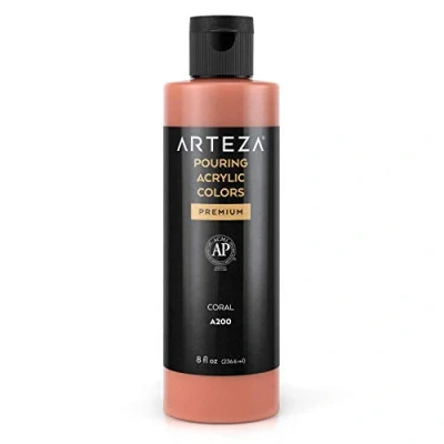 ARTEZA Acrylic Pouring Paint, 8 oz (236 ml), A200 Coral, High Flow No Mixing Needed, Paint for on Canvas, Glass, Paper, Wood, Tile, and Stones