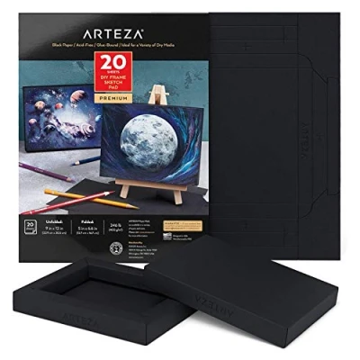 Easy to Use & Display: Simply use the marked guidelines to instantly fold your black sketch pad into a ready-to-display work of art, or a unique frame that you can add photos to. Heavyweight Sketch Pad: These 246 lb (400 gsm) wood pulp sheets are suitable for a variety of dry media techniques. Make your pencils, pastels, and gel pens stand out on the black surface. Glue-Bound Pad: Each perforated sheet detaches cleanly from the pad, so you can start sketching and displaying your artwork right away. Acid-Free Sheets: You won’t have to worry about the artwork on your drawing or frame fading over time; the acid-free sheets help your piece maintain its vibrancy. 100% Guaranteed: We're sure you'll love your DIY Frame, but if you have any problems, just let us know & we'll send you a free replacement., Weight: 1.5 pounds, Manufacturer: Arteza