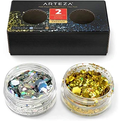 Arteza Chunky Glitter Flakes, Set of 2 Holographic Colours (Diamond & Fancy), 5 g Jars, Multi Purpose, for Epoxy Resin, and Craft Projects