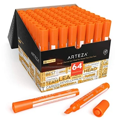 ARTEZA Orange Highlighter Pens, Set of 64, Wide Chisel Tips, for Office, School, Beginners & Experts
