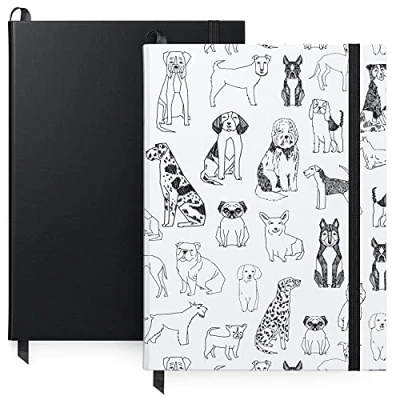 ARTEZA Pocket Notebooks, Set of 2, 15.2 x 20.3 cm, 96 Sheets Each, Dogs Design and Black, 2 Lined Writing Journals with Smooth Paper, School Supplies for Planning, Writing, Sketching