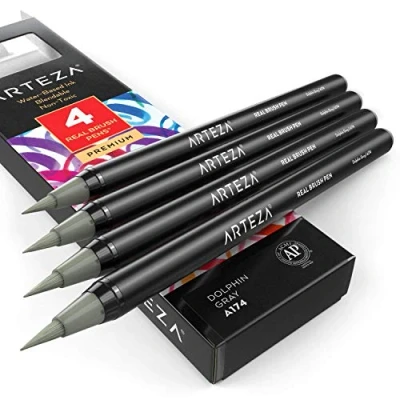 4 Dolphin Grey coloured Watercolour Brush Pens with Real Nylon Brush Tips: Our paint brush pens give precision control for beginner painters, making our watercolour markers easier to use than traditional watercolour and brush sets. More Precision & Easier to Use Than Traditional Watercolours with Paint Brushes: We designed our Real Brush Pens so that beginning artists can easily create fine details or broad brush strokes. The nylon brush tip has the flexibility to make blending watercolours simple for artists at any level. Parents Will Love the No Mess Clean Up & Non-Toxic Watercolours: Using our Real Brush Pens, means you won’t have to worry about water spills the next time your kid wants to do watercolour painting. Designed & Created by Artists: Here at Arteza, we are passionate about creating products that inspire. For us, art is an expression of the human experience. That’s why we work to make Arteza art supplies accessible to all people. We Care About Our Customers: We want to ensure you have a great experience with our products, because we truly care about our customers. Our team strives to create products we can stand behind. If you have any issues, please reach out and we’ll make it right.