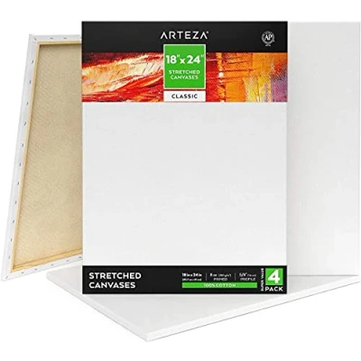 Amazon MarketplaceCotton Painting Canvas Ideal for Many Types of Media: Your stretched canvas for painting can be used with a wide variety of artist media, from oil paints and watercolors to acrylic, tempera, and gouache. Sturdily Constructed Canvas in Bulk: These 18x24 canvases are stretched and stapled onto pinewood bars that create a firm frame. Our canvas for acrylic painting supplies offer great quality for a great price. Primed & Ready to Go Canvas Pack: Each stretched canvas in this set is pre-coated with 8 oz. of acid-free acrylic gesso. So you can start painting and creating as soon as you remove the wrapper. Designed and Created by Artists: Here at Arteza, we are passionate about creating products that inspire. For us, art is an expression of the human experience. That’s why we work to make our art supplies accessible to all people. Art Supplies for Everyone: Arteza was built on providing quality painting, drawing & art supplies for all ages and levels. If you have any issues with our products, please reach out, and we’ll make it right.
