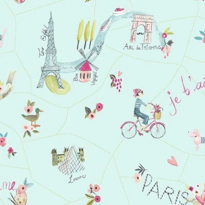 Arthouse 696104 Paris with Love Wallpaper, Duck Egg, 53 cm x 10.05 m