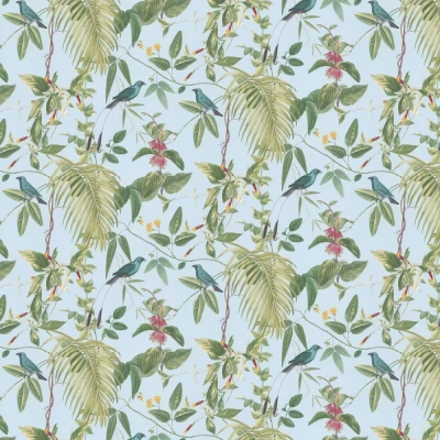 Arthouse Exotic Garden Wallpaper Blue, Green, Vintage Feel, Delicate Birds Surrounded by Beautiful Flowers, Intertwined with Warm Green Tones of The Foliage on a Soft Blue Background, 921609