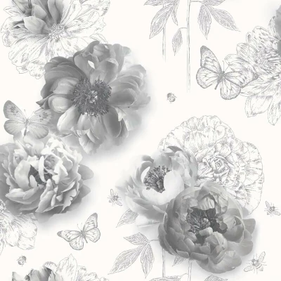 The dazzling design showcases a greyscale aesthetic that captures the beauty of blooming flowers set against a textured background, providing an elegant and contemporary feel. The sketched outlines and intricate flower illustrations lend a unique character to the wallpaper, making it a perfect addition to any modern interior. This wallpaper is not just visually stunning; it is also designed with practicality in mind.