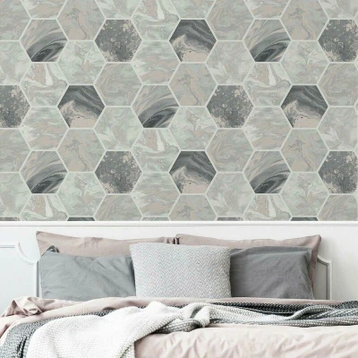WallpaperDirectModern and chic marbled hexagons tile together to create a fabulous, eye catching statement. Seen here in the Charcoal / Rose Gold colourway.