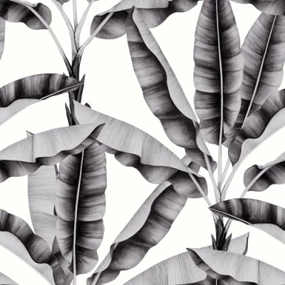Large scale tropical leaf design Monochrome colourway Size: 10.05m (32.10 ft) long x 53cm (21in) wide, Manufacturer: Arthouse