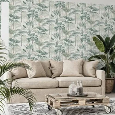 WallpaperDirectAn all over design of palm trees in a soft misty green colourway - which will work well as a feature wall or on 2 or more walls in a room.