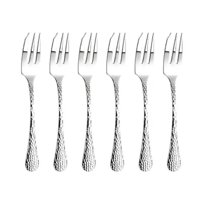 Featuring a harmonious blend of timeless tradition and contemporary flair, the Arthur Price Avalon Set of 6 Pastry Forks is ideal for both daily dining and celebratory gatherings. Meticulously crafted from premium 18/10 stainless steel, these pastry forks boast a distinctive hammered texture that not only enhances its visual appeal but also catches the light, elevating any dining experience. This set is presented in gift box packaging which is fully recyclable.While dishwasher safe for convenience, hand washing is advised to preserve its brilliance.Plus, with a generous 50 year manufacturer's guarantee, you can trust in the enduring quality of the Arthur Price Avalon Set of 6 Pastry Forks.