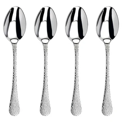 Featuring a harmonious blend of timeless tradition and contemporary flair, the Arthur Price Avalon Set of 4 Serving Spoons is ideal for both daily dining and celebratory gatherings. Meticulously crafted from premium 18/10 stainless steel, these serving spoons boast a distinctive hammered texture that not only enhances its visual appeal but also catches the light, elevating any dining experience. This set is presented in gift box packaging which is fully recyclable.While dishwasher safe for convenience, hand washing is advised to preserve its brilliance.Plus, with a generous 50 year manufacturer's guarantee, you can trust in the enduring quality of the Arthur Price Avalon Set of 4 Serving Spoons.