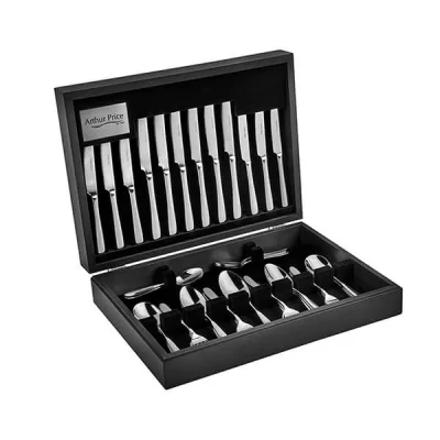 6 x Table Knives6 x Table Forks6 x Dessert Knives6x Dessert Forks6 x Dessert Spoons6 x Soup Spoons6 x Tea Spoons2 x Serving SpoonsArthur Price Classic Willow Cutlery - The epitome of sophisticated understatement, Willow's gentle curves are wonderful on the eye as well as a dream to hold. Dishwasher Safe mirror finish, 18/10 stainless steel with a 50 year guarantee.Arthur Price Classic cutlery - Today's designs become tomorrow's classics. The Arthur Price Classic Collection will bring the ultimate in style to any table. Made from the finest grade 18/10 stainless steel and with a 50 year guarantee, each Arthur Price knife, fork and spoon is built to last.  Knives are not for sale to persons under the age of 18. - all knives and bladed products are delivered by Age Verified Delivery (AVD). The carrier may request proof of age in order to deliver your parcel. If proof of age is not available, or the recipient is underage, the carrier will refuse to deliver.