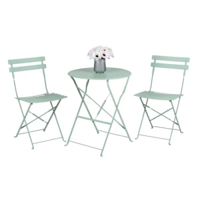 Arti Casa Bistro Set 3 Piece Green Folding Metal Garden Furniture for Balcony or Patio Round Table with 2 Chairs