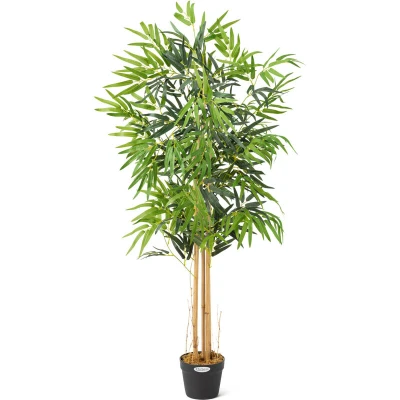 ManoManoGeneral description Brighten your home or garden with these beautiful artificial bamboo plants. Pre-potted with natural bamboo stems and dense foliage, they offer a low maintenance alternative to real bamboo while maintaining an authentic appearance. Great care has been taken to ensure the leaves look lush and realistic, made from polyester to replicate the size and thickness of real bamboo leaves. Technical specifications Height: 120cm Width: 47cm Depth: 47cm Material of leaves: Fabric (Polyester) Number of leaves: 730 Pot filled with concrete: Height 13cm, Width 16cm Weight: 2 to 2.5kg (approx.) Compatibility and accessories Recommended for indoor use but can be displayed outdoors with UV-protective treatment. For outdoor display, repotting in a larger decorative pot is advised. Installation Upon arrival, straighten the leaves and stems to create a beautiful display. For outdoor use, firm the plant down with soil, sand, gravel, or stones to protect it from the wind. Usage Ideal for