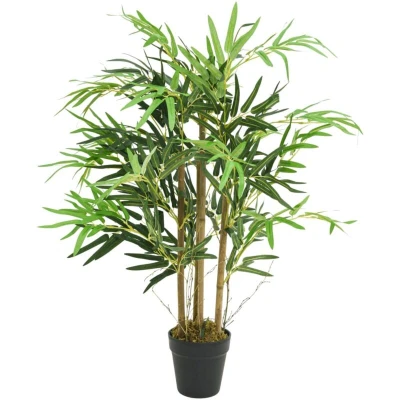 ManoManoGeneral description This artificial bamboo tree is an excellent choice for enhancing your entryway, living room, or office. With its realistic appearance and vibrant design, it brings a touch of nature indoors without the need for maintenance. Technical specifications Colour: Green Material of trunks: Bamboo Material of leaves: Textile fibre Material of round pot: Plastic Total height: 80 cm Total number of leaves: 500 Assembly required: Yes Usage The artificial bamboo plant is versatile and can be used in various settings. It enhances indoor spaces such as homes and offices, and creates a natural atmosphere when placed outdoors in gardens, patios, or poolside areas. Other information