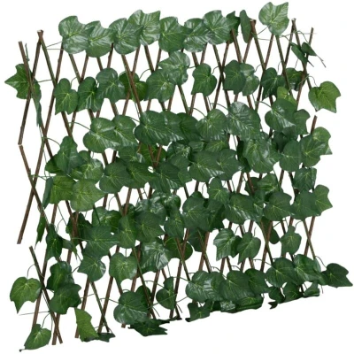 ManoManoGeneral description This artificial grape leaf trellis is designed to enhance the aesthetics of your garden while providing privacy and security. It effectively blocks strong sunlight while allowing air to circulate, making it an excellent choice for outdoor decoration. Technical specifications Colour: Green Material: PVC, wood Size (Before expand): 70 x 30 cm (W x H) Size (After expand): 190 x 60 cm (W x H) Number of leaves: 130 leaves SKU: 366582 Installation The trellis is expandable, allowing you to adjust the width from 70 cm to 190 cm and the height from 30 cm to 60 cm according to your needs. Usage Ideal for decorating garden walls and covering unsightly areas. Flexible design allows for use on various surfaces. Requires no watering or insect control, making it easy to maintain. Other information