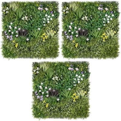 SPRING BLOOM LIVING WALL PANELS (1m x 1m): Transform walls and fences from drab to fab with these Artificial Spring Bloom Living Wall Panels. Pack includes two panels, each measuring 50cm x 100cm to create a 100cm x 100cm display. Decorated with lush, lifelike leaves and flowers, they’re easy to maintain and perfect for indoor and outdoor display. LUSH LOW MAINTENANCE FOLIAGE: Whereas real living walls take years to establish, these artificial living walls contain dense foliage for instant display. Also, they’re easier to maintain with no water, sunlight, or pruning needed. Covered with Boxwood, Mimosa, Jasmin, and a variety of other leaves and flowers to capture the look of a spring garden in full bloom. WATERPROOF & UV PROTECTION: Durable polyethylene foliage is weather-resistant to retain its vibrant look for many years to come. Fully waterproof and UV protected for up to 5 years, depending on the level of sunlight exposure. Also, they’re easy to clean. Simply lightly spray the foliage with water, before gently wiping it with a microfiber cloth to dry. EASY TO ASSEMBLE & INSTALL: Each panel has clips on two sides and holes on two sides, allowing you to easily clip them together using the fixing tool included. A heavy-duty plastic mesh backing makes them easy to hang in a square, vertically, or horizontally. You can also trim the mesh backing to any shape or size to fit curved or smaller spaces. FOR INDOOR & OUTDOOR DISPLAY: Artificial living wall panels are perfect for beautifying outdoor walls, fences, railings, and balcony areas. Plus, you can use them to add a splash of greenery to the your home and create a stunning indoor wall feature. Because the foliage is so dense, the living walls are also great for using as garden privacy screening.